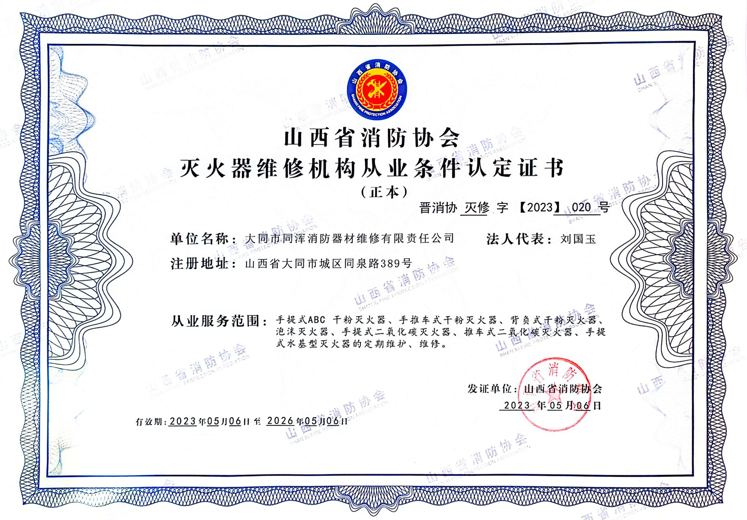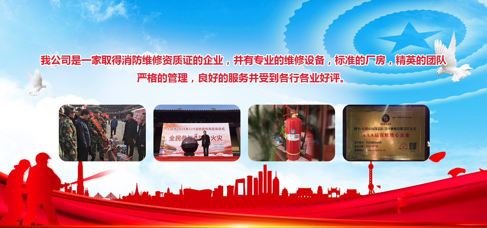 大同市同渾消防器材維修有限責(zé)任公司,位于大同市同泉路389號(hào),始建于2000年,是公安部消防局定點(diǎn)銷售和維修的企業(yè),歷經(jīng)多年的創(chuàng)建、發(fā)展和拼搏,現(xiàn)有多家消防器材廠商供應(yīng)我公司,并有現(xiàn)代化維修設(shè)備,標(biāo)準(zhǔn)的廠房,嚴(yán)格的管理,優(yōu)良的設(shè)備,良好的服務(wù)并受到各行各業(yè)的好評(píng)??偨?jīng)理劉國(guó)玉嚴(yán)格管理,嚴(yán)格要求,精益求精,認(rèn)真負(fù)責(zé),帶領(lǐng)團(tuán)隊(duì)熱烈歡迎各界朋友顧客光臨。